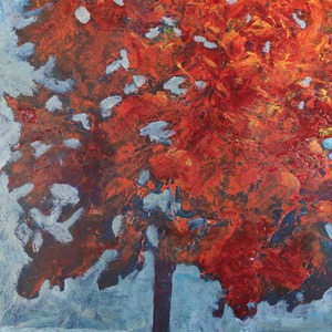 Gele boom heeft een krachtige penseelvoering. Het schilderij straalt levenslust en optimisme uit.
